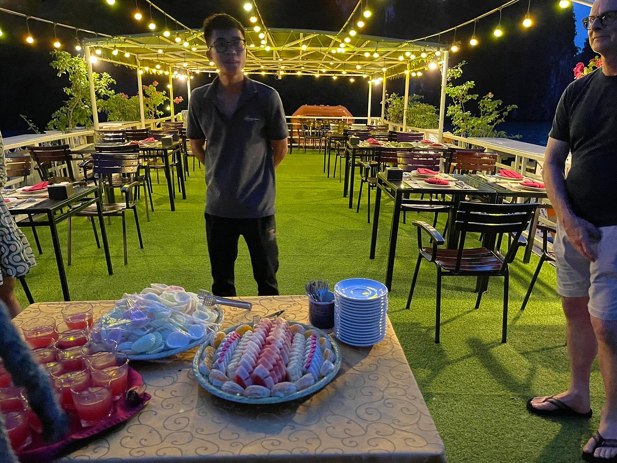 13:30: Delicious Vietnamese set menu lunch is served as the boat cruises further
